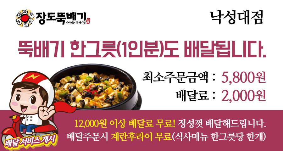 낙성대점 '1인분 배달서비스' 개시